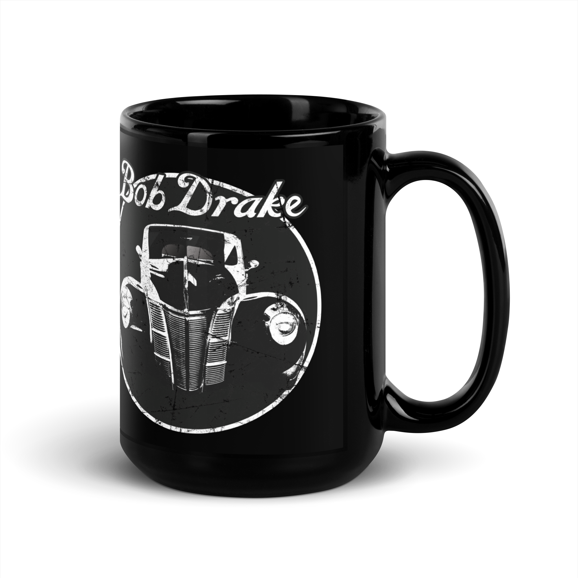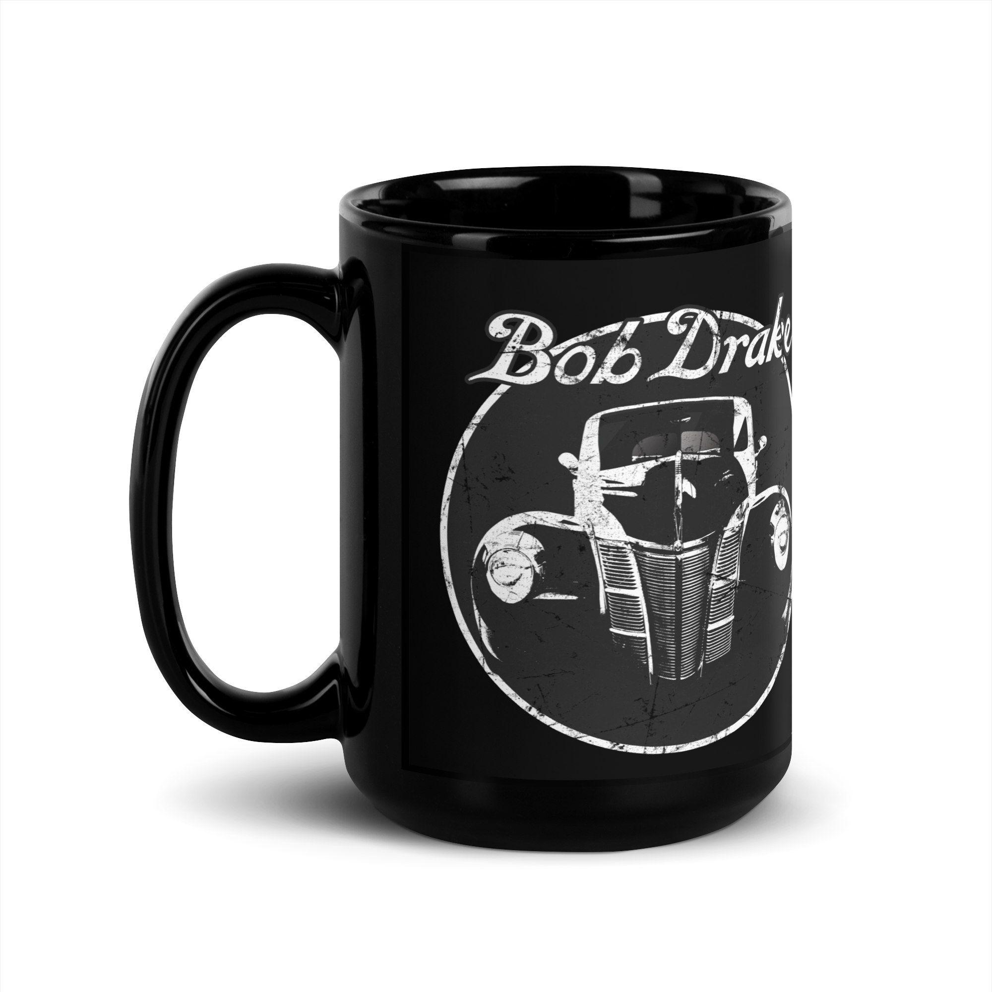 Black Ceramic Mug with 1940 Deluxe. Design printed on both sides. Black inside and out. Dishwasher and microwave safe.
