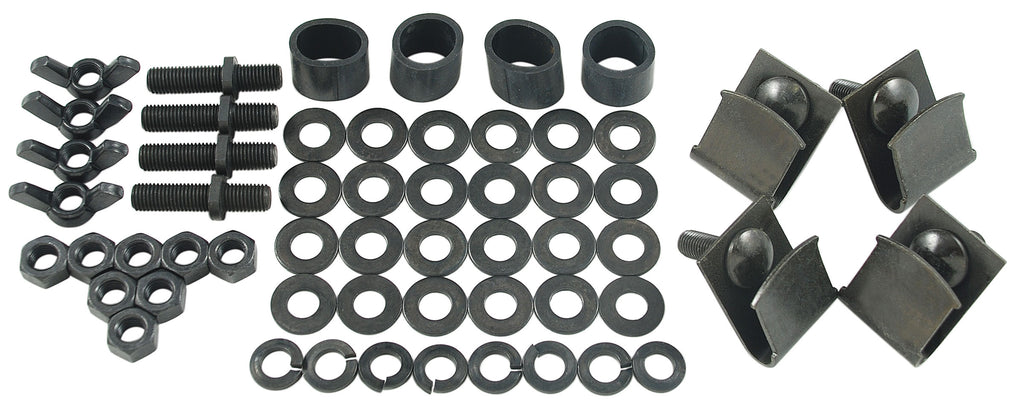 Contains 4 mounting clips, 4 studs, 4 wing nuts, 4 rubber sleeves & all necessary nuts & washers.