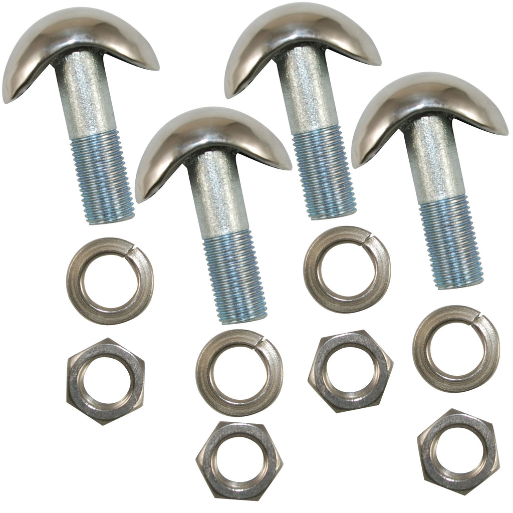 Forged with Polished stainless steel cover. 2 required per bumper. Includes nuts and lock-washers. Set of 4.