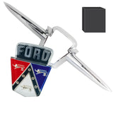 Simply because black is always the new black, we refashioned Ford's original ivory white colored name plate into a darker piece. Black background delivers a unique look against any colored pickup and raises the chrome pop factor to its max. Mounts on outside of door just below window. Includes specialty tubular clips. Set of two.