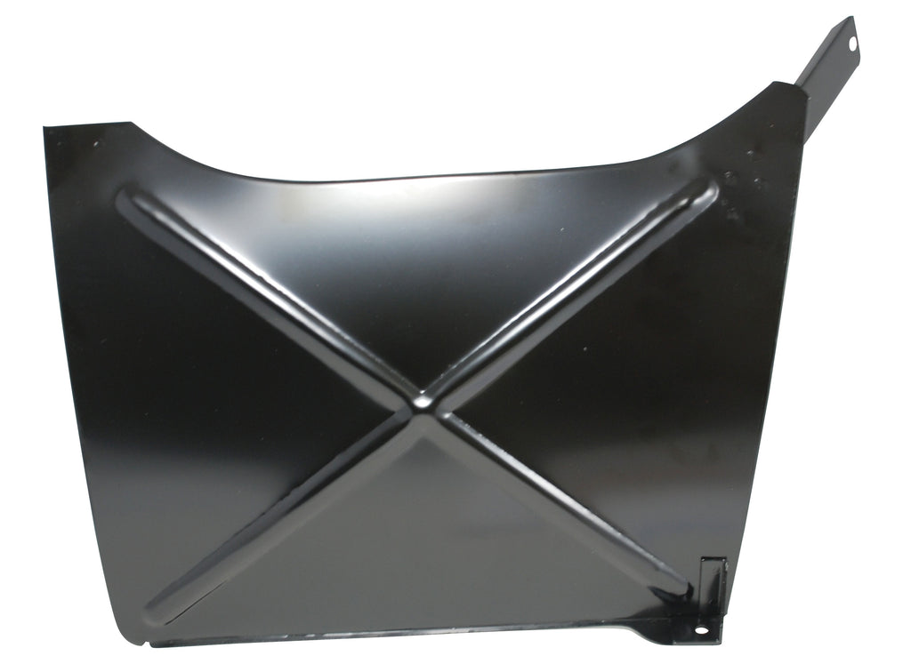 These all steel, heavy gauge units serve two functions; they brace the fenders behind the front wheels while guarding against ugly rock dings to the fenders exterior. Exact copies of the originals for RH and LH. These are a must-use for steel or fiberglass fenders. Heavy gauge steel, painted black, ready to mount.