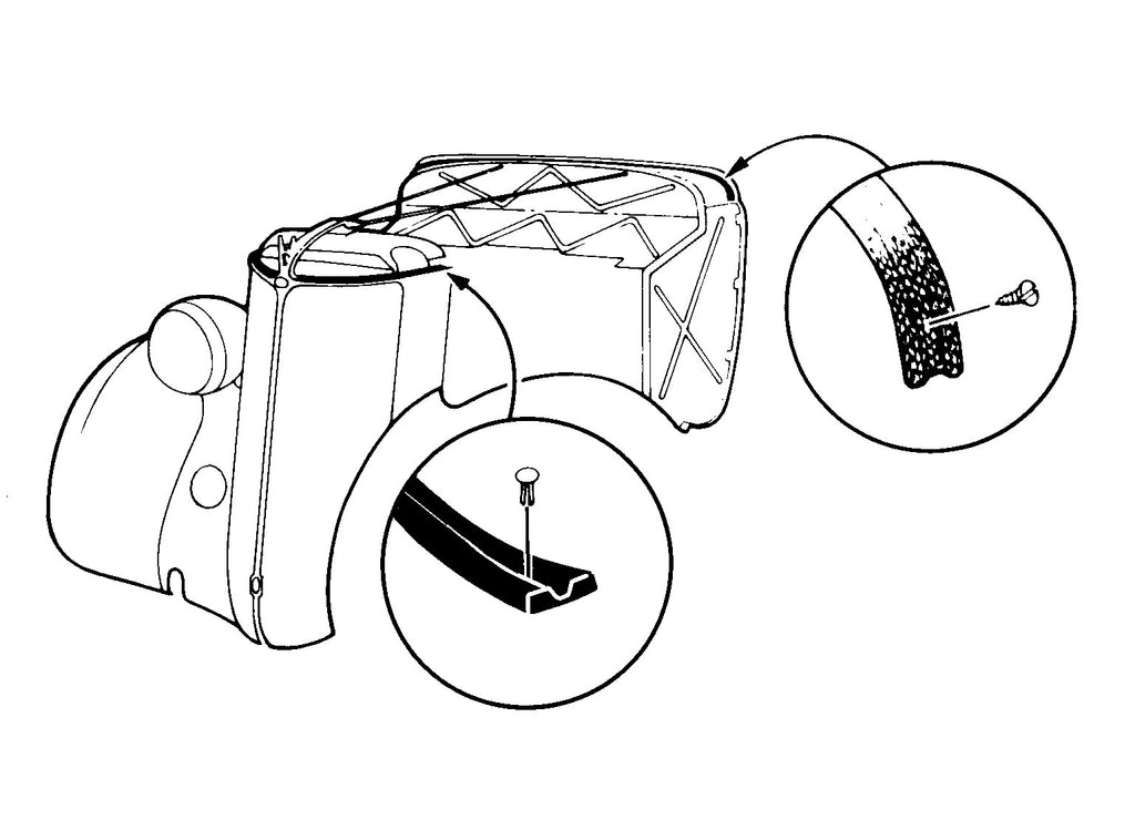 Made of black dense rubber in the same profile shape of the original, this lace forms a cushioning seal between the grille and hood. Includes special brass split rivets.