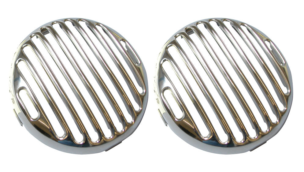 Stainless steel. Perfectly shaped, beautifully polished. Includes rubber pads. Set of two (RH/LH).