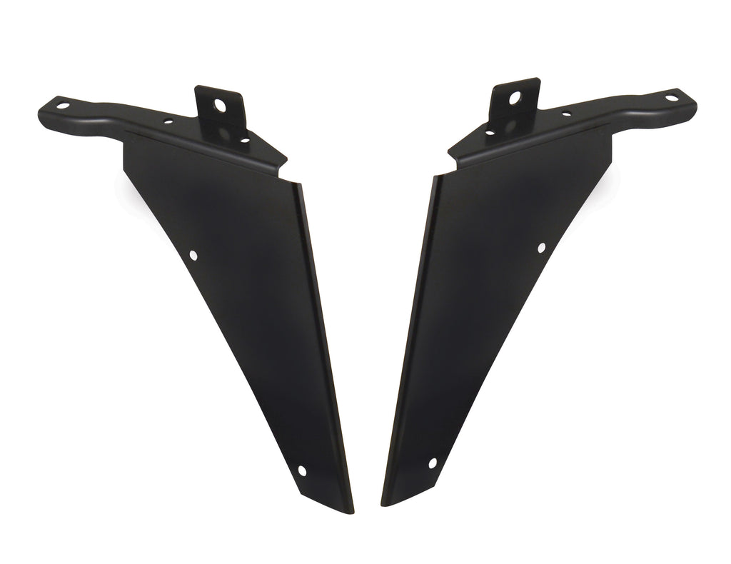 Tying the grille to the upper hood sides, these aren’t simple L-brackets, but correctly shaped and angled braces to hold your grille assembly firm and secure. Die stamped heavy gauge steel with black EDP finish. Includes hardware.